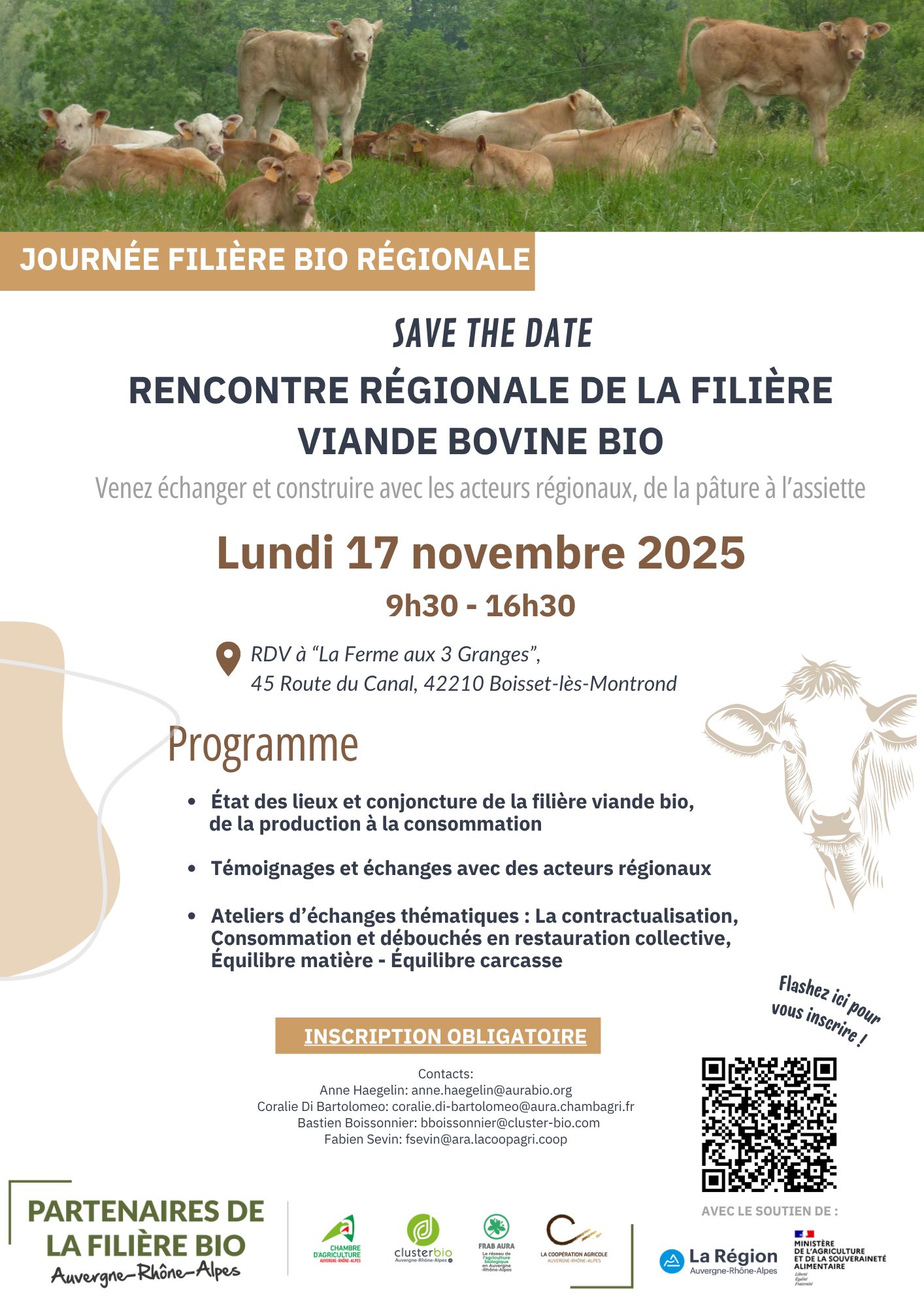 Vous êtes transformateur, distributeurs, coopératives, acteur de la RHF ou producteurs ? Vous souhaitez mieux connaître la conjoncture de la filière viande bio régionale ? Vous êtes en recherche de débouchés ou de fournisseurs ? Cette journée est faite pour vous !